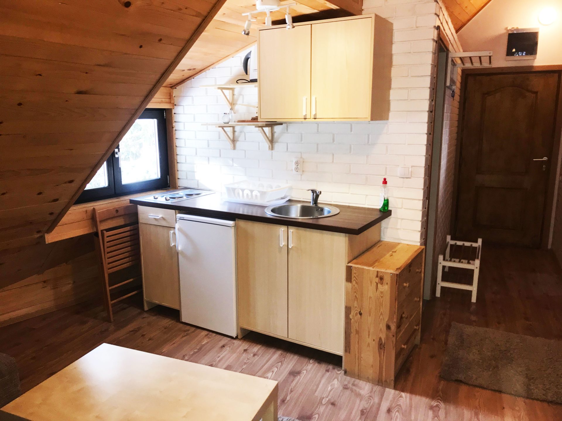 Apartman 6, strukture 5+1, ukupne površine 43 km, nema balkon, prima max 6-8 osoba i nalazi se u potkrovlju, okrenut ka šumi, istčno orijentisan. Sastoje se od komfornog dnevnog