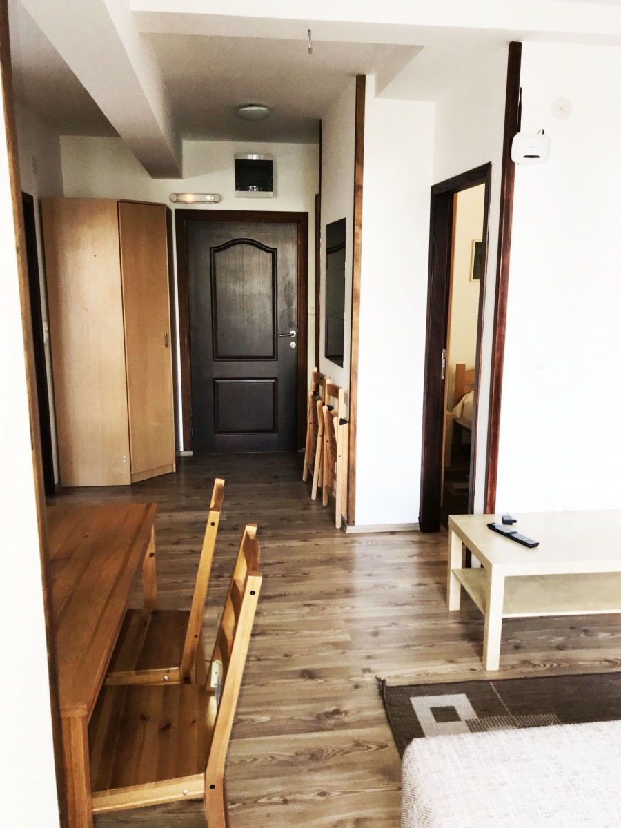 Apartmani 1 i 3 su okrenuti ka ulici, odnosno ka zapadu a apartmani 2 i 4 su okrenuti ka šumi, odnosno ka istoku. Sastoje se od komfornog dnevnog boravka, jedne odvojene spavaće sobe sa